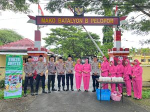 Sumbawa Besar,Suarasamawa.com –Bulan Ramadhan merupakan bulan untuk menebar kebaikan antar sesama. Momentum bulan suci Ramadan ini pun dimanfaatkan oleh personil Kompi 1 Yon B Plopor Sumbawa untuk mempererat tali silaturahmi dengan masyarakat. Pada Senin (23/02/2026) sore, Wadanki 1 Yon B Plopor, IPDA Pol. Suprapto memimpin langsung pembagian takjil gratis kepada warga yang melintas di depan Mako Brimob Sumbawa. Selain di depan Mako, kegiatan serupa juga dilakukan di depan POM Bensin Atas.