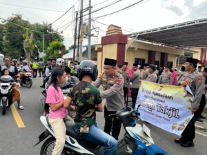 Selain berbagi takjil, personel yang bertugas juga menyelipkan pesan-pesan keamanan dan keselamatan berlalu lintas (Kamseltibcar Lantas). Warga diingatkan untuk tetap berhati-hati dalam berkendara dan mengutamakan keselamatan agar sampai di rumah dengan selamat untuk berkumpul bersama keluarga.