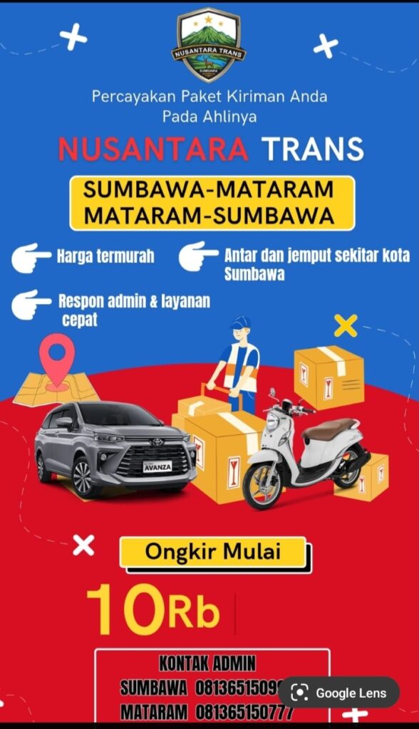 Sumbawa-Besar,Suarasamawa.com—Travel Nusantara Trans yang melayani Route Sumbawa-Mataram, selain mengangkut penumpang juga melayani pengiriman Paket. Uniknya, pemilik paket tidak perlu datang mengantar paket yang akan dikirim, cukup melalui tilpon atau WhatsApp ke nomor admin, maka kurir akan datang menjemputnya, begitu juga sebaliknya, paket yang datang akan diantar langsung kerumah penerima yang berdomisili di sekitar wilayah kota Sumbawa.