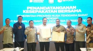 Sumbawa-Besar ,Suarasamawa.com– Pemerintah Kabupaten Sumbawa bersama Pemerintah Provinsi Nusa Tenggara Barat (NTB) mengambil langkah strategis dalam percepatan hilirisasi sektor peternakan. Bupati Sumbawa, Ir. H. Syarafuddin Jarot, MP, dan Gubernur NTB, Lalu Muhamad Iqbal, resmi menandatangani Nota Kesepahaman (Memorandum of Understanding/MoU) dengan ID FOOD melalui PT Rajawali Nusantara Indonesia (PT RNI Persero) di Jakarta, Senin (09/03/2026).