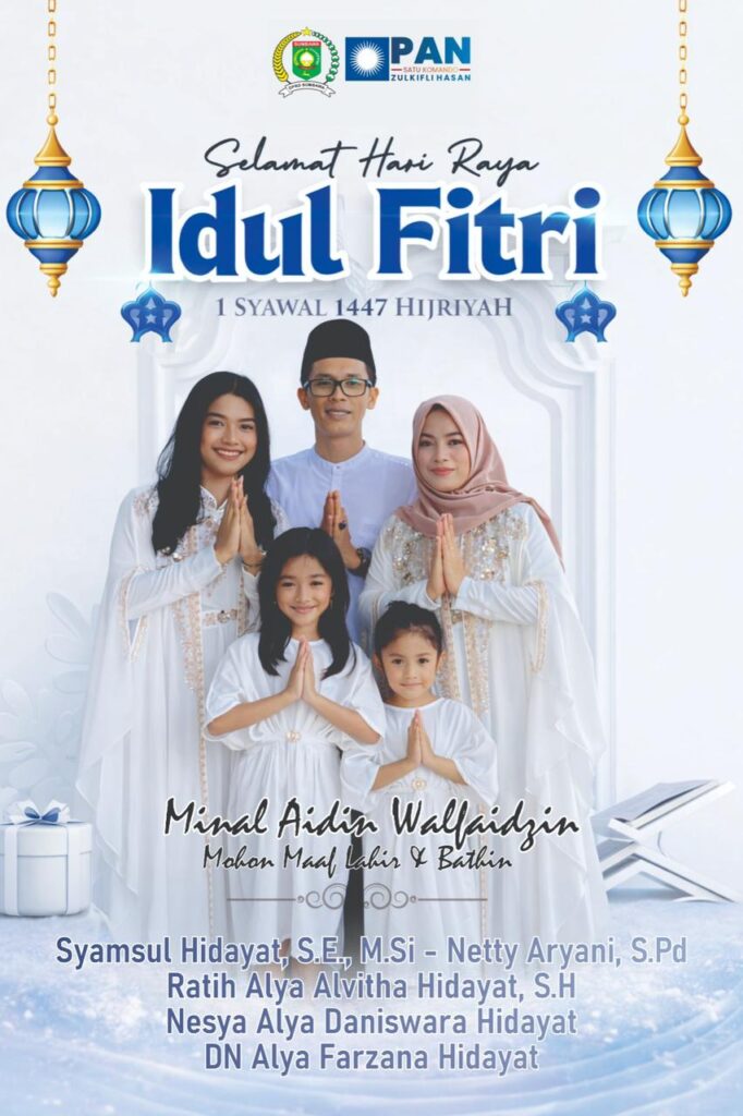Kami, Syamsul Hidayat, SE,M.Si, (DAYAT PAN), Anggota DPRD Kabupaten Sumbawa, Beserta Keluarga Mengucapkan : Selamat Hari Raya Idul Fitri, 1 Syawal 1447 H, Mohon Maaf Lahir dan Bathin