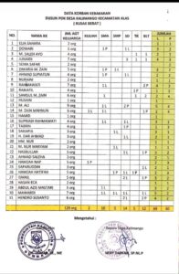 Berdasarkan data yang dikeluarkan oleh Kades Kalimango dan Camat Alas, sebanyak 129 warga dari 31 rumah yang terdampak kebakaran terpaksa menempati tenda-tenda darurat yang di bangun oleh warga dan BPPD Kabupaten Sumbawa.