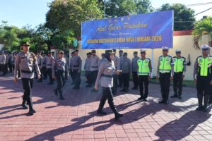 Sumbawa Besar, Suarasamawa.com– Kepolisian Resor Sumbawa menggelar Apel Gelar Pasukan Kesiapan Kontigensi Aman Nusa I Rinjani – 2026 bertempat di Lapangan Wicaksana Laghawa, Senin pagi (06/04/2026). Kegiatan ini dipimpin langsung oleh Kapolres Sumbawa, AKBP Marieta Dwi Ardhini, S.H., S.I.K., sebagai bentuk kesiapan kepolisian dalam menghadapi dinamika sosial dan potensi konflik di wilayah Kabupaten Sumbawa.